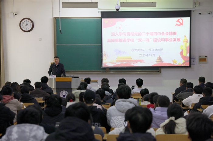 沈兴全以“学习贯彻党的二十届四中全会精神,高质量推进学校‘双一流’建设和事业发展”为主题,围绕全会的重要地位与意义、“十五五”规划的原则与部署、青年学生在推进中国式现代化中的责任担当三个方面,结合学校“双一流”建设和改革发展实际,对全会精神作了系统阐述和深入解读。