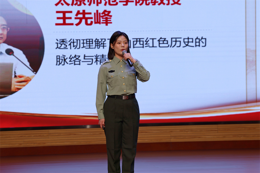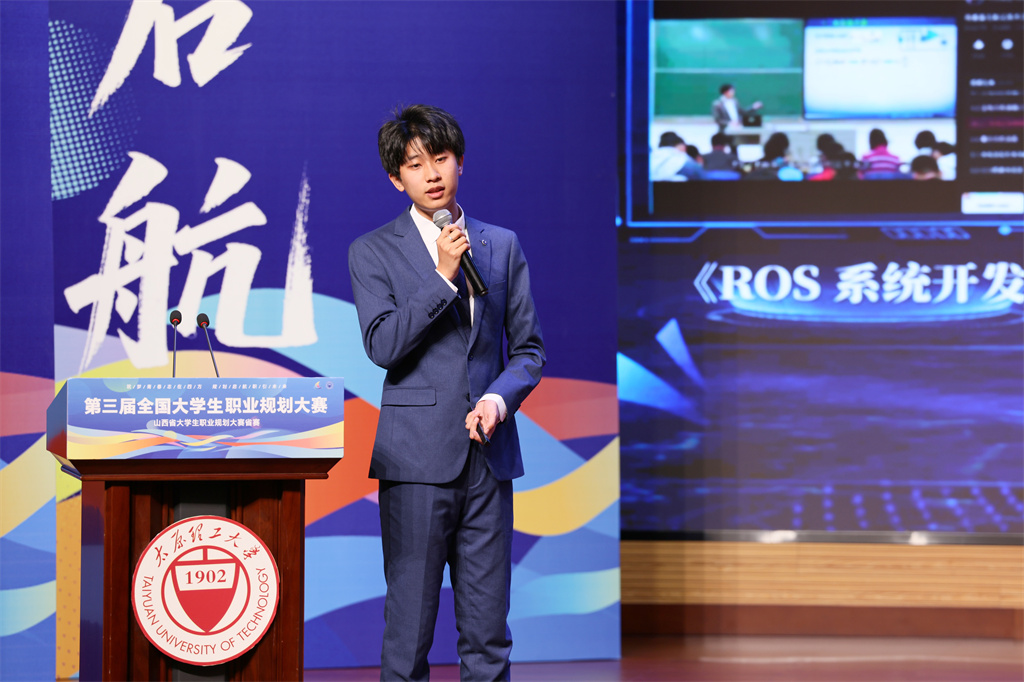 颁奖环节与优秀选手汇报展演交替进行,现场气氛热烈。我校金奖获得者赵靖、中北大学金奖获得者刘荣臻、太原师范学院朱佳鑫、晋城职业技术学院李雅娟、山西文化旅游职业大学张诗涵等五位优秀选手依次登台,分享了他们的职业规划故事和青春梦想。从致力于国家能源转型的“综合能源系统解决方案架构师”,到守正创新的“新时代上党梆子演员”;从扎根三晋大地的“红色讲解员”,到瞄准未来科技的“人形机器人视觉算法工程师”,再到服务民航强国的“空中乘务员”,选手们生动的讲述展现了新时代青年将“小我”融入“大我”的坚定决心与责任担当。
